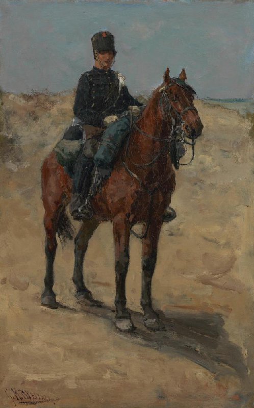 As a young artist Breitner was fascinated by the military exercises held in the dunes outside The Hague. He sketched the mounted artillery in action, and also made more static studies of horsemen and their steeds, like this work. The artist clearly had a gift for painting horses. Mesdag asked him to portray the animals in his Panorama, a year later, in 1881