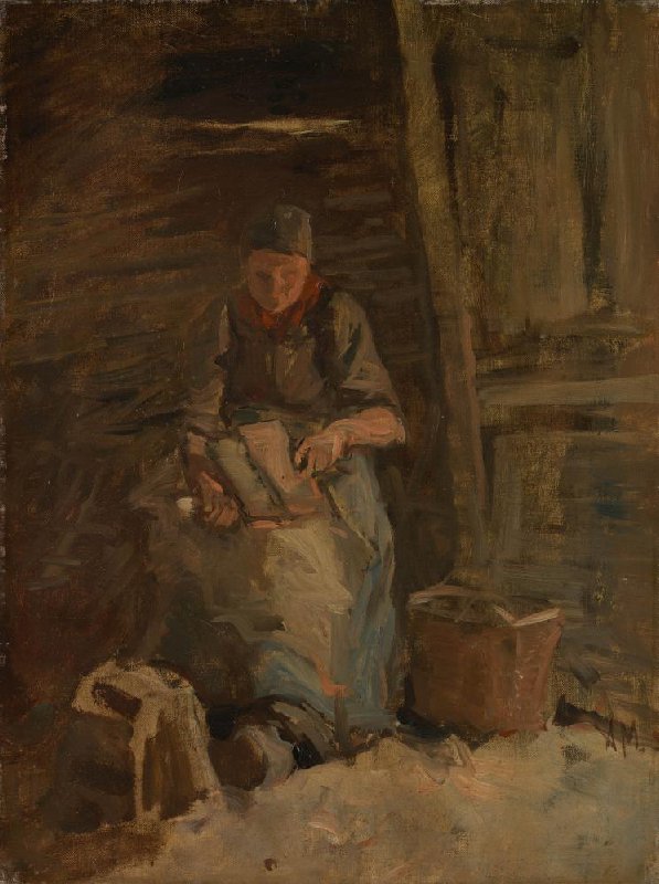 The woman is depicted in a sketchy manner. Hendrik Willem Mesdag, who loved art with this sketchy style, bought the painting around 1893.