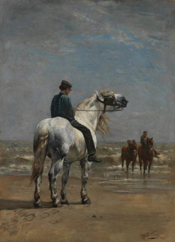 This time, however, Mesdag was not satisfied. He voiced harsh criticism of the painting in a letter to his friend: ‘The white horse has great qualities, but it seems to me that the head and neck are too big in proportion to its hindquarters: the man in the blue smock is not well drawn, nor is one of the horses in the background.’