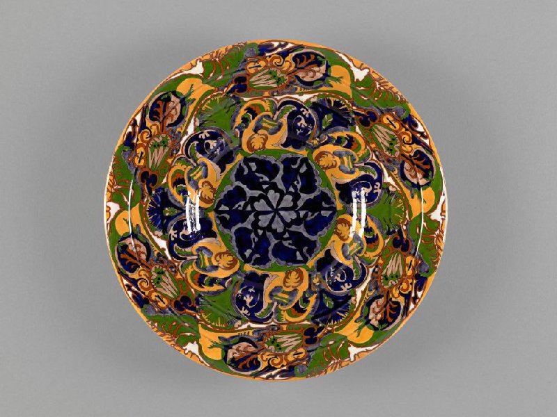 Plate with stylized flower and plant decoration