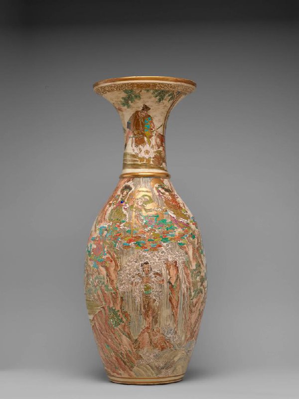 Kyoto Satsuma ware with overglaze and gold decorations, 91 cm x 42 cm