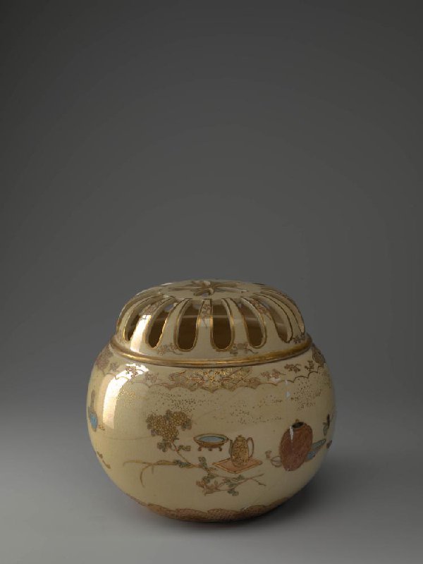 Satsuma ware with overglaze and gold decorations, 13.5 cm x 15 cm