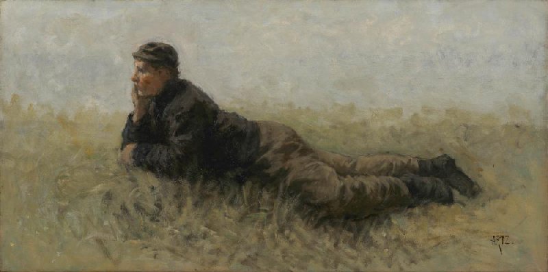 - 27-28 januari 1891 veiling Den Haag, H.G. Tersteeg bij Pulchri Studio (Atelier Adolphe Artz), lot 8 (PĂȘcheur couchĂ© dans les dunes), gekocht door Hendrik Willem Mesdag, Den Haag voor NLG 250; 14 mei 1903 collectie Museum Mesdag gedoneerd door Hendrik Willem Mesdag en Sientje Mesdag-van Houten aan de Staat der Nederlanden; vanaf 1 augustus 1903 Rijksmuseum H.W. Mesdag, Den Haag; tussen 1934 en 1990 in beheer van het Mauritshuis, Den Haag; vanaf 1 april 1990 in beheer van het Rijksmuseum Vincent van Gogh, Amsterdam; vanaf 1 juli 1994 Museum Mesdag, in beheer van Stichting Van Gogh Museum, Amsterdam, vanaf 2011 onder de naam De Mesdag Collectie.