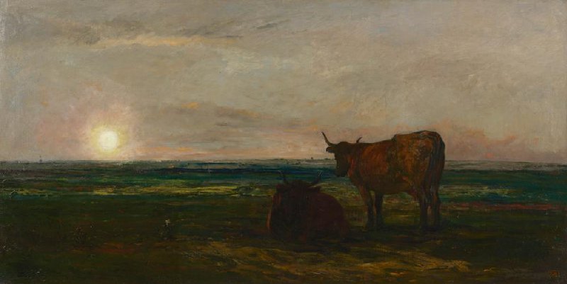 - 14 april 1891 veiling Parijs, Hôtel Drouot (Tableaux et Études par Charles Daubigny (…)), lot 23 (Vaches dans un pâturage; soleil levant), verkocht voor FRF 3.150; in of voor juli 1892 verworven door Hendrik Willem Mesdag, Den Haag; 14 mei 1903 collectie Museum Mesdag gedoneerd door Hendrik Willem Mesdag en Sientje Mesdag-van Houten aan de Staat der Nederlanden; vanaf 1 augustus 1903 Rijksmuseum H.W. Mesdag, Den Haag; tussen 1934 en 1990 in beheer van het Mauritshuis, Den Haag; vanaf 1 april 1990 in beheer van het Rijksmuseum Vincent van Gogh, Amsterdam; vanaf 1 juli 1994 Museum Mesdag, in beheer van Stichting Van Gogh Museum, Amsterdam, vanaf 2011 onder de naam De Mesdag Collectie.