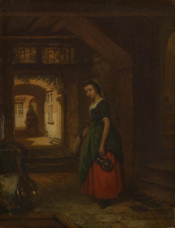 - 21 mei 1895 veiling Den Haag, H.G. Tersteeg bij Pulchri Studio (Schilderijen en studiën, schetsen en enkele antieke meubelen nagelaten door Fridolin Becker (…)), lot 47 (Een dienstmeisje), gekocht door Hendrik Willem Mesdag, Den Haag voor NLG 120; 14 mei 1903 collectie Museum Mesdag gedoneerd door Hendrik Willem Mesdag en Sientje Mesdag-van Houten aan de Staat der Nederlanden; vanaf 1 augustus 1903 Rijksmuseum H.W. Mesdag, Den Haag; tussen 1934 en 1990 in beheer van het Mauritshuis, Den Haag; vanaf 1 april 1990 in beheer van het Rijksmuseum Vincent van Gogh, Amsterdam; vanaf 1 juli 1994 Museum Mesdag, in beheer van Stichting Van Gogh Museum, Amsterdam, vanaf 2011 onder de naam De Mesdag Collectie.