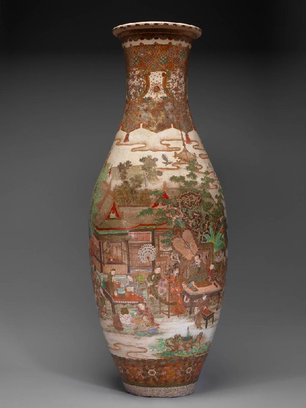 Satsuma-aardewerk met opglazuur en gouddecoraties, 123 cm x 53 cm