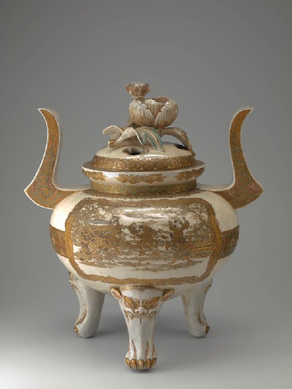 Wierookbrander met figuratief decor, met dekselknop in de vorm van een bloem