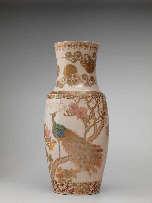 Satsuma-aardewerk met opglazuur en gouddecoraties, 35.2 cm x 15 cm