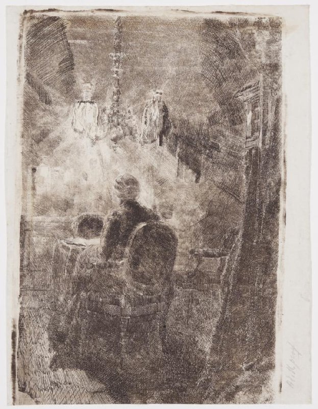 Proefdruk voor Sientje Mesdag-van Houten aan tafel bij lamplicht